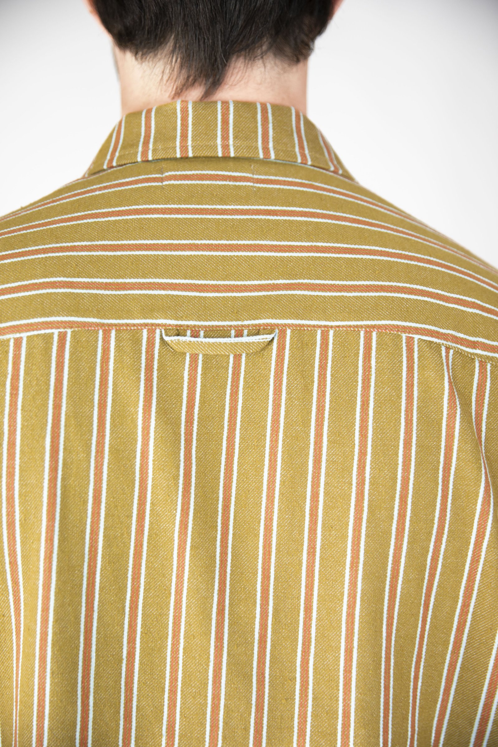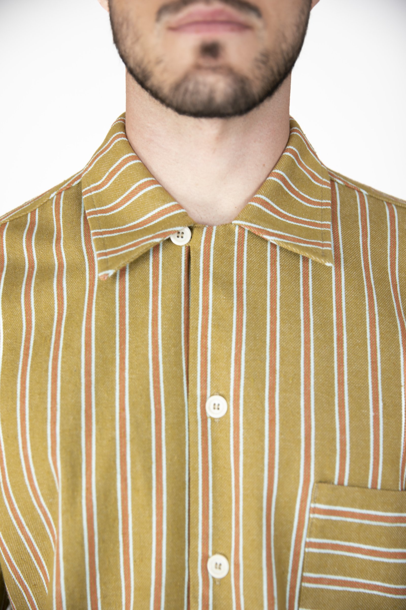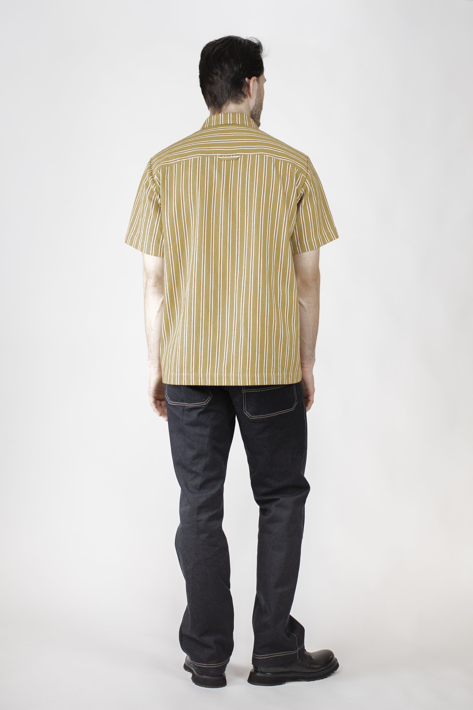 Short sleeved shirt with patched breast pocket with bias stripes.