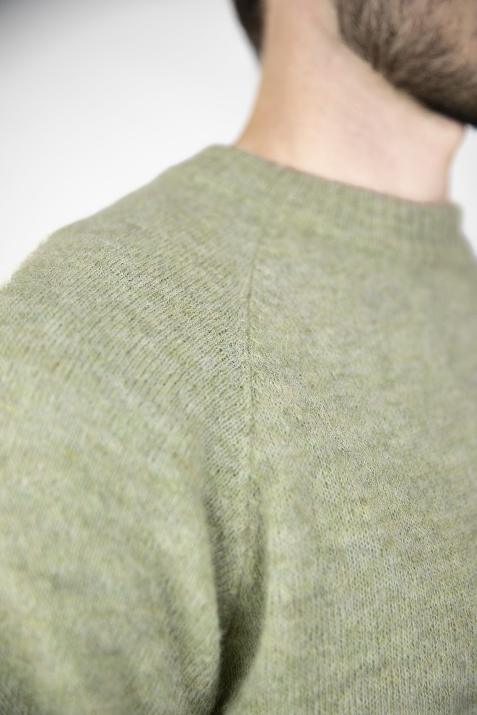 Knitted wool sweater with raglan sleeves. Rib endings.