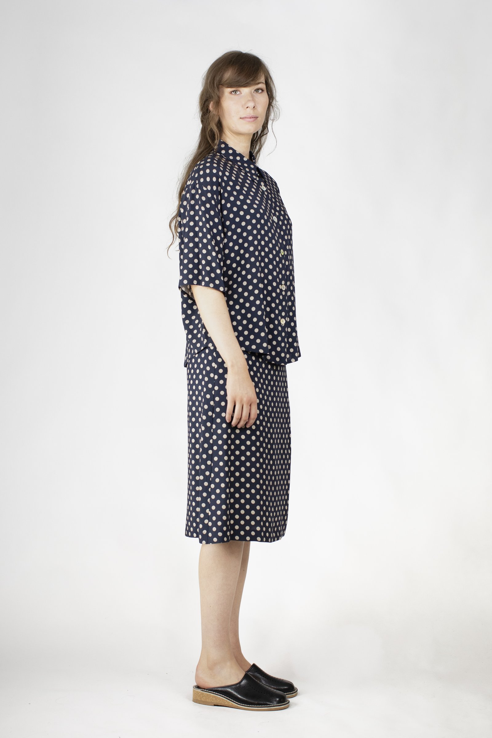 Material: 100% viscose Ecovero FSC. Lining: 100% cupro. Care: 30° gentle cycle. Iron after wash. Made in: Lithuania.